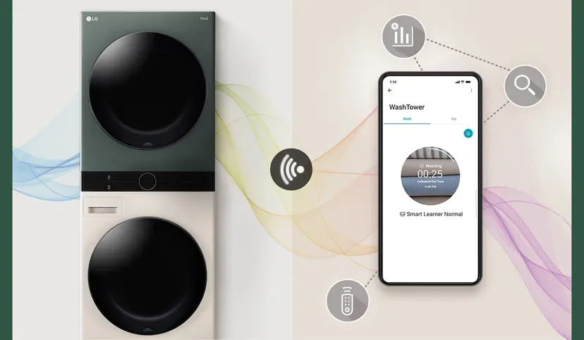 Check the status of the WashTower™, download new cycles, or monitor energy usage with LG ThinQ™.