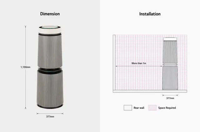LG PuriCare™ purifies the air 360° around you, in every direction, no matter where you place it.