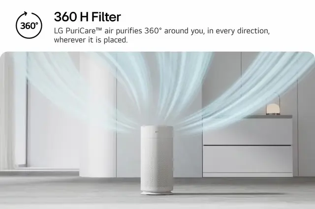 LG PuriCare⢠purifies the air 360° around you, in every direction, no matter where you place it.