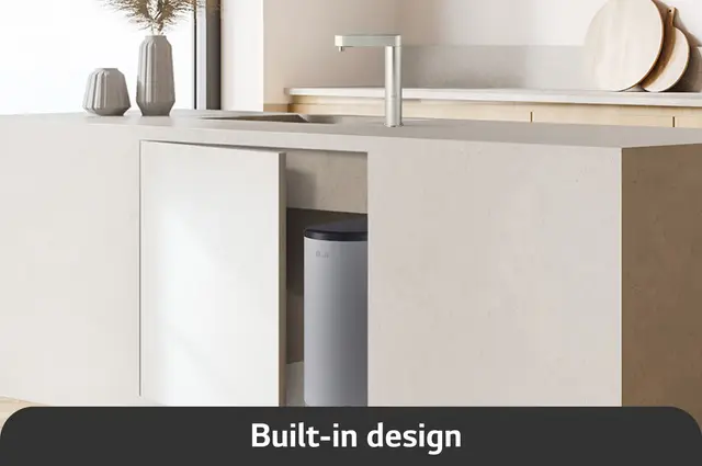 A built-in purifier that fits neatly in your kitchen. The main body is placed under the sink, leaving only the slim spout and allowing for a tidy, spacious kitchen.