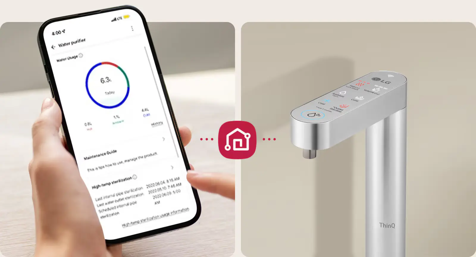 Use the LG ThinQ⢠app on your smartphone to easily check the status of your water purifier from anywhere in real time.