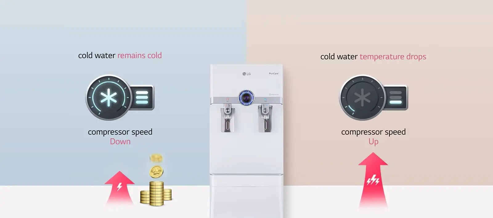LG Puricare⢠saves energy when supplying cold water with the Smart Inverter Compressor⢠system.