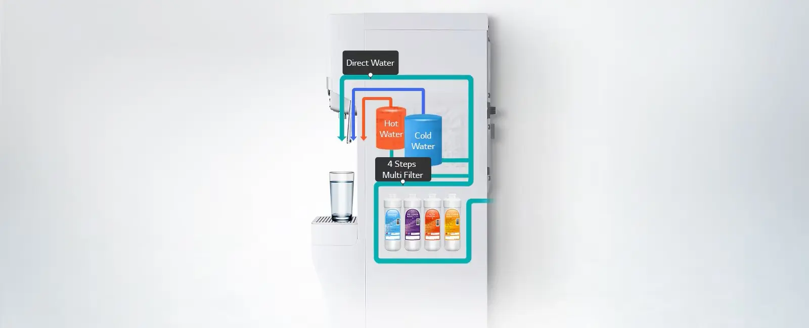 The LG PuriCare⢠Water Purifier uses a 4-Step Multi-Filter to remove heavy metals for clean water.